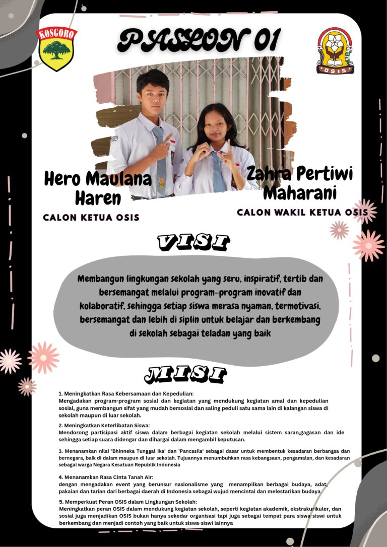 VISI Membangun lingkungan sekolah yang seru, inspiratif, tertib, dan bersemangat melalui program-program inovatif dan kolaboratif, sehingga setiap siswa merasa nyaman, termotivasi, bersemangat, dan lebih disiplin untuk belajar berkembang di sekolah sebagai teladan yang baik. MISI 1. Meningkatkan rasa kepersamaan dan…